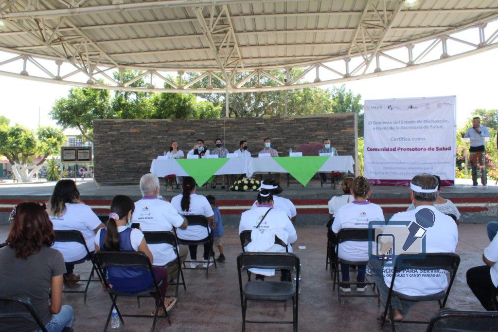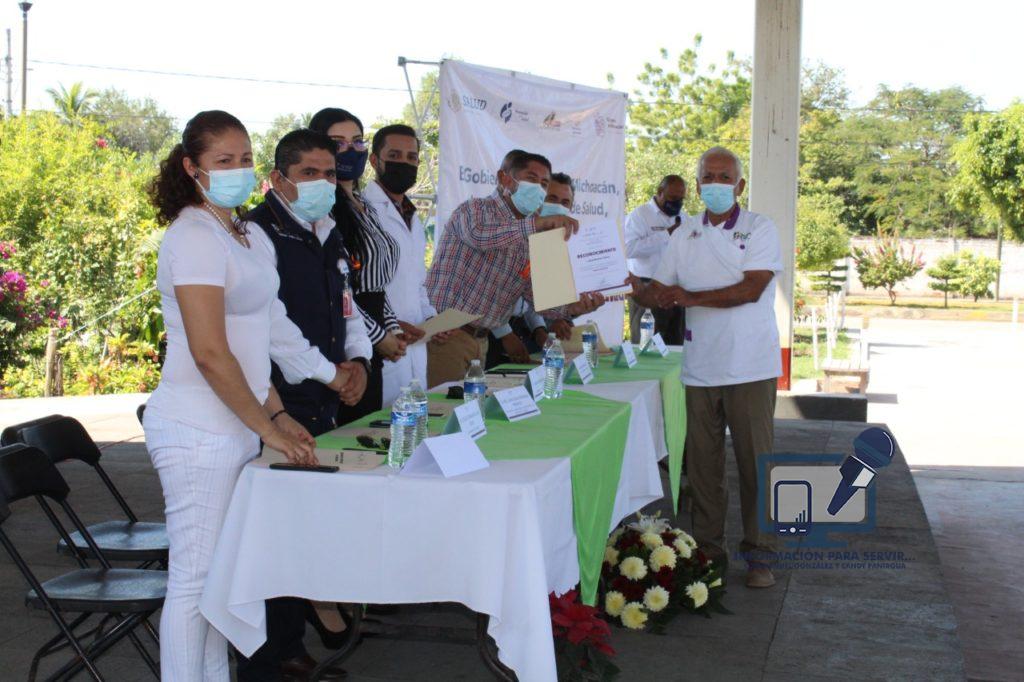 PINZANDARO, MPIO. DE BUENAVISTA, MICH., 25 DE NOVIEMBRE DE 2021.- El propósito de la certificación de comunidades saludables es mejorar las condiciones de salud de la población, así como fomentar una cultura de la prevención, afirmo el jefe de la jurisdicción sanitaria 07, Dr., Abraham Espinoza Villa al presidir junto con autoridades municipales de Buenavista, la ceremonia de certificación de la localidad de Pinzandaro como una Comunidad Promotora de Salud.