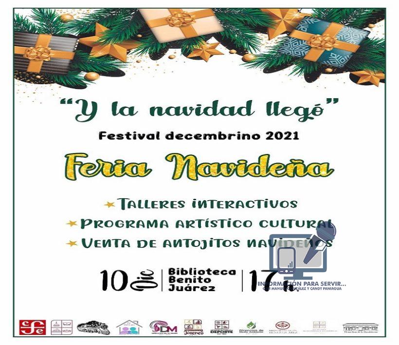 Apatzingán, Mich.- a 09 de Diciembre del 2021.- Con más de 20 actividades se llevará a cabo la Feria Navideña este viernes 10 de diciembre a partir de las 17:00 horas en las instalaciones de la Biblioteca Pública Benito Juárez, espacio en el cual dependencias municipales realizarán talleres interactivos, eventos culturales y venta de antojitos navideños.
