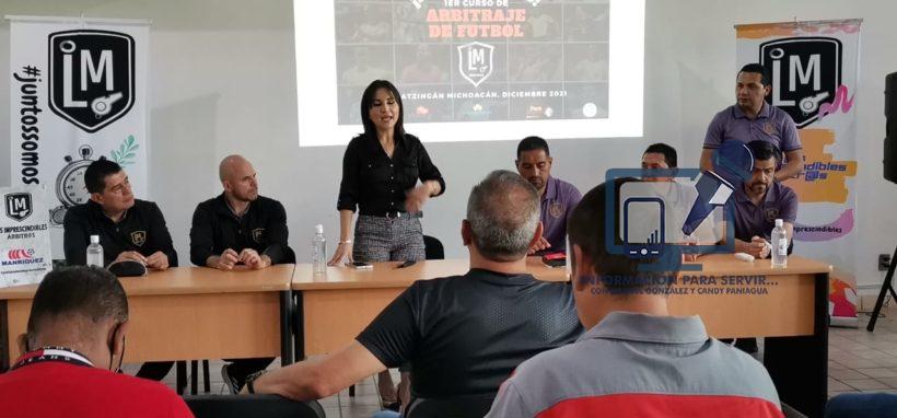 Apatzingán, Mich., a 02 de diciembre de 2021.- “El apoyo a todas las actividades que tengan que ver con el deporte, serán siempre una de mis prioridades, como representante popular”, manifestó la regidora, Blanca Álvarez Chávez, al inaugurar el Primer Curso de Arbitraje de Fútbol, que se realiza en las instalaciones del Instituto Tecnológico.