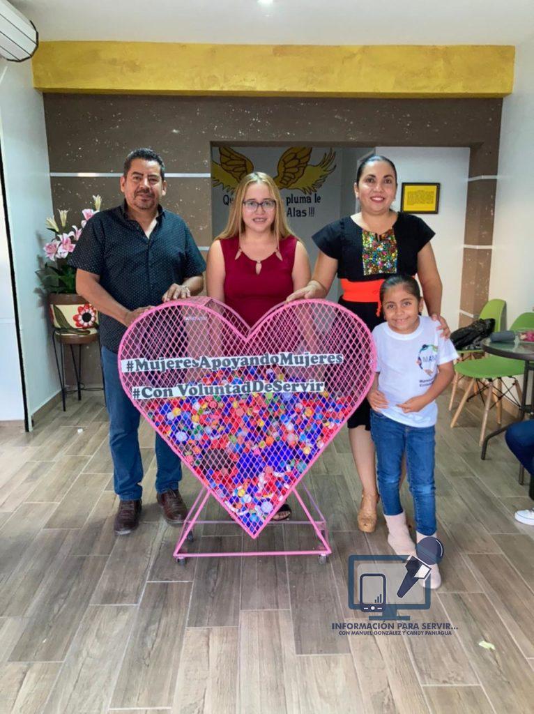 APATZINGAN, MICH., 01 DE DICIEMBRE DE 2021.- La Red Estatal de Apoyo a las Mujeres Víctimas de Violencia Región Apatzingán representada por la señora Zalua Tafolla se une a la recolección de tapitas de plástico a la causa de Familia unida contra el Cáncer AC que preside la Joven Daniela Herrera, quien a través de esta organización, brinda apoyo integral con medicamentos, quimioterapias a niños y adultos con cáncer.