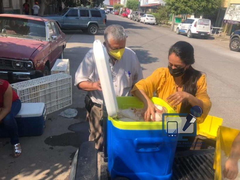 Verónica Castellanos y Antonio Navarrete, distribuyen una tonelada de pollo fresco entre 700 familias de Apatzingán