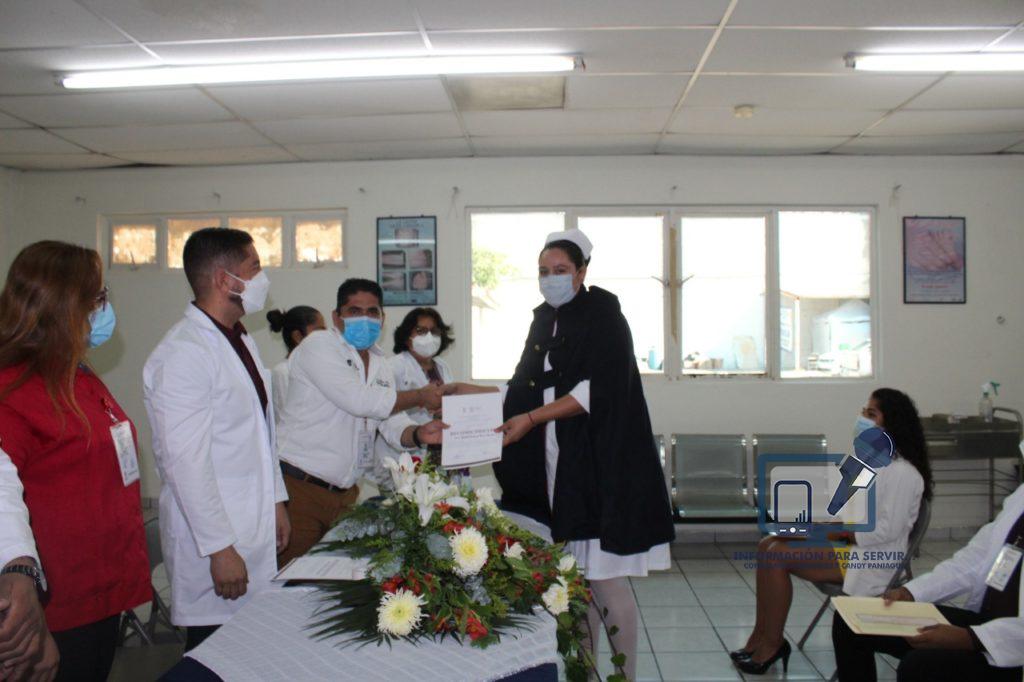 Enseguida se dio paso a la entrega de cartas de terminación del servicio social a enfermeras 1 odontólogo y 3 nutriólogos que prestaron su servicio social durante un año en Centros de Salud y las oficinas Jurisdiccionales.
