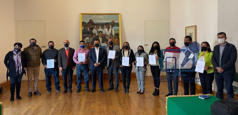 Al revisarse los perfiles y procedimientos que acreditaran las y los maestros designados, el secretario de Gobierno, Carlos Torres Piña e Iván Bárrales, coordinador general de Planeación y Evaluación Educativa, representante de la SEE, entregaron los documentos a las y los nuevos funcionarios para desempeñar las actividades en el área educativa indígena.
