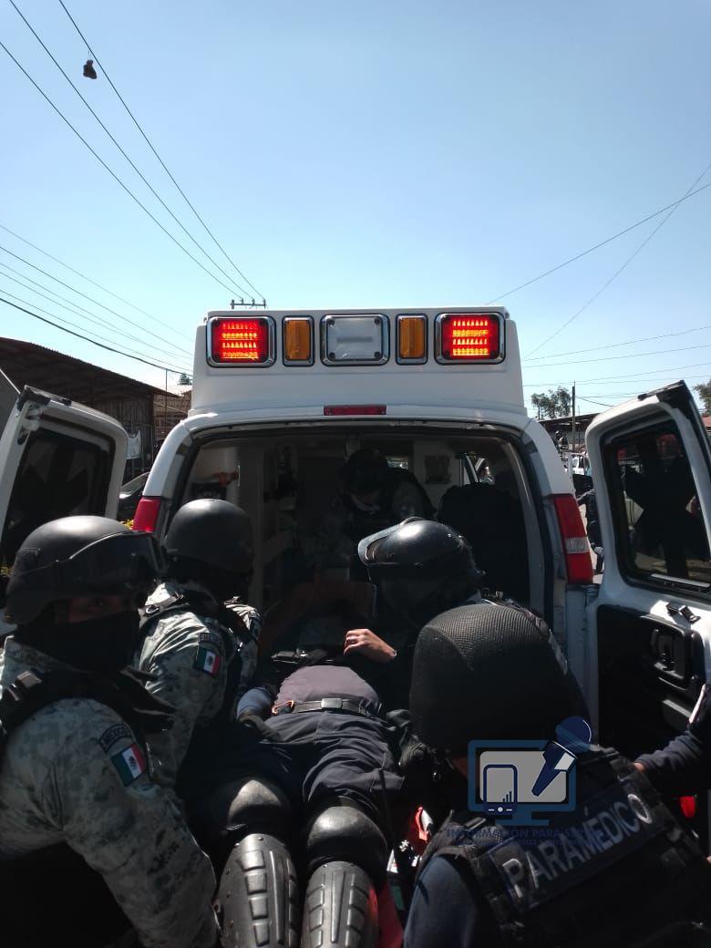 Debido al ataque hay ocho agentes estatales heridos, uno de ellos con una herida punzocortante con posible fractura de fémur, y por lo menos, dos guardias nacionales también están lastimados, siendo todos ellos canalizados a recibir atención médica.