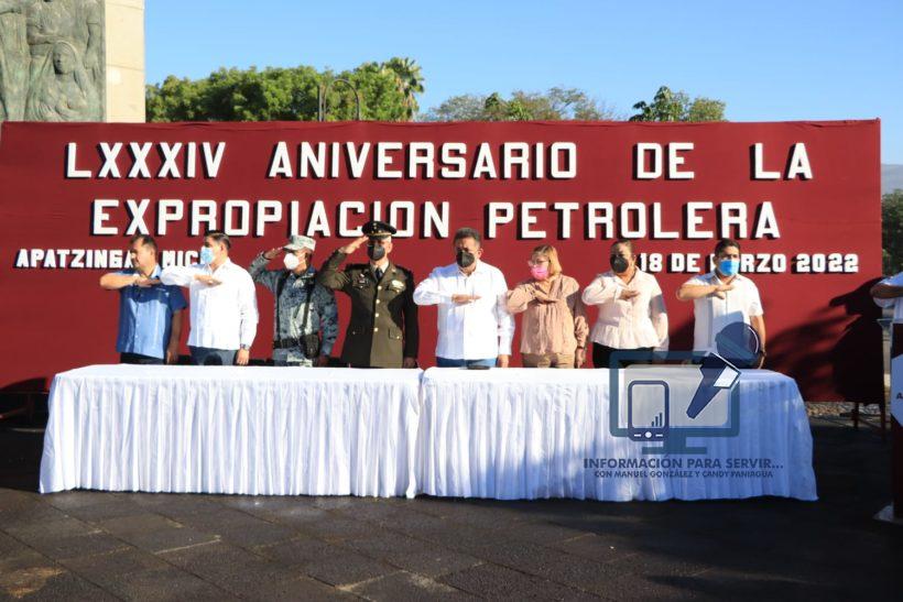 Apatzingán, Mich.- a 18 de Marzo del 2022.- Durante el 84 Aniversario de la Expropiación Petrolera, el presidente municipal, José Luis Cruz Lucatero, destacó la trayectoria del expresidente Lázaro Cárdenas al nacionalizar la industria del valioso recurso energético, ahora en el 2022, el presidente Andrés Manuel López Obrador, otro gran visionario, está dando una gran batalla para regresar a los ciudadanos lo que pertenece a la nación.