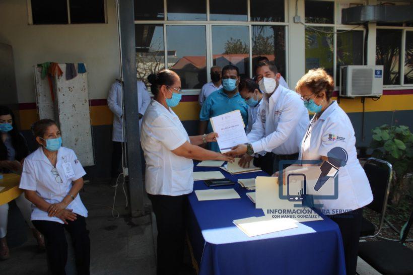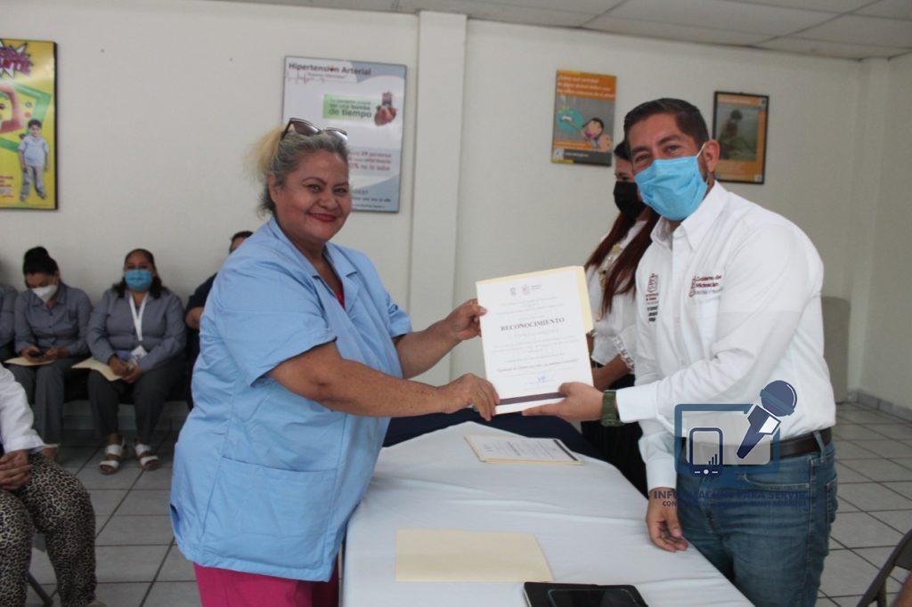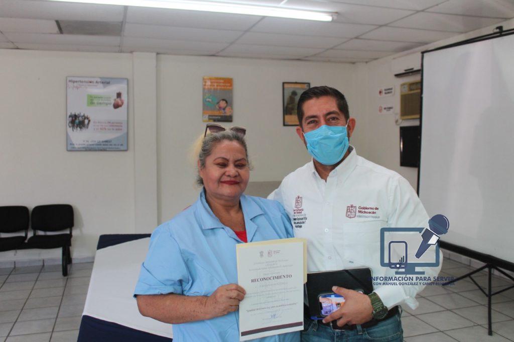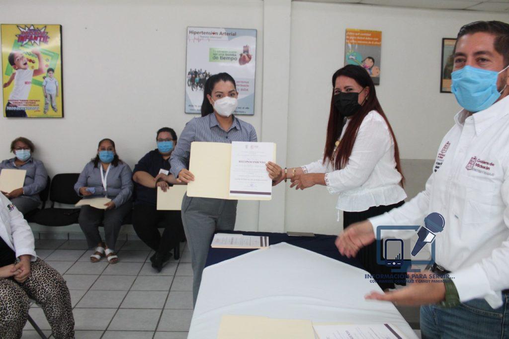 Los simbólicos actos, se llevaron a cabo en el aula de la Jurisdicción y la Explanada del Centro de Salud Urbano de Apatzingán, donde el jefe jurisdiccional acompañado del Administrador, Lic. Rogelio Emmanuel Vaca Rojas, la Coordinadora de Promoción de la Salud, Psic. Alma Sonia Rodríguez Peregrino, la jefa de Recursos Humanos, Rosio Ortiz Arevalo y la Jefa de Enfermeras del C.S. MSP. Estela Mora Aguilera, llevaron a cabo la entrega de los reconocimientos a las trabajadoras de salud.