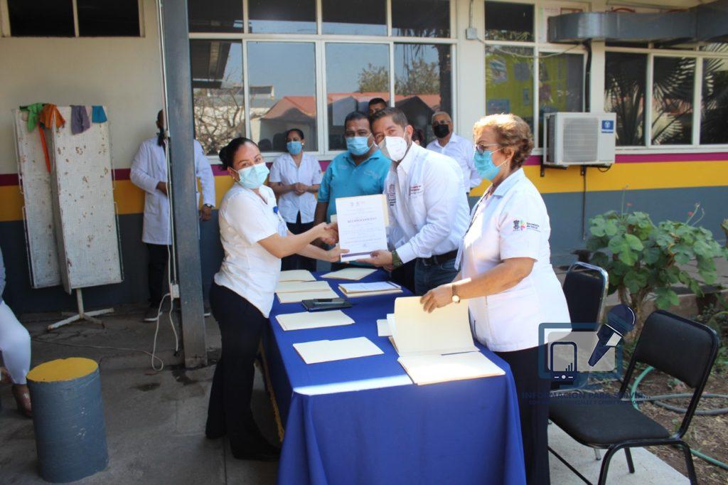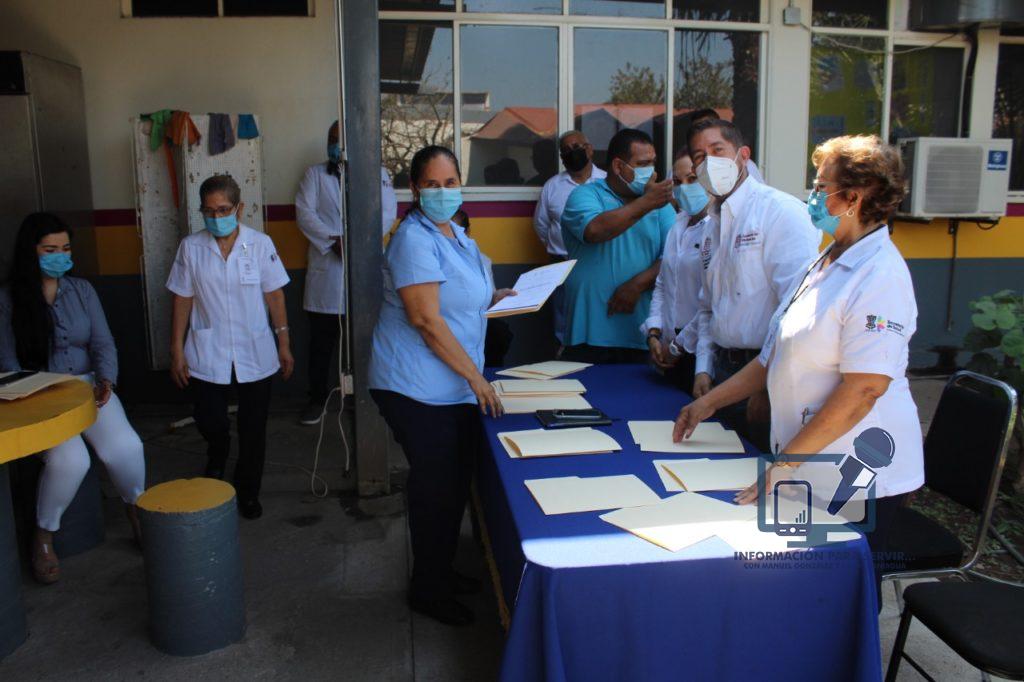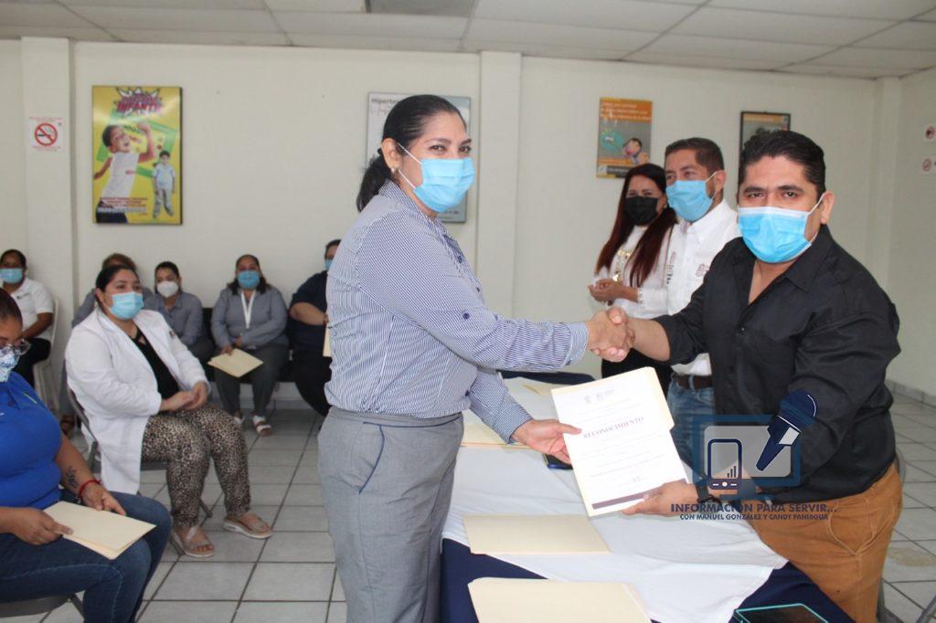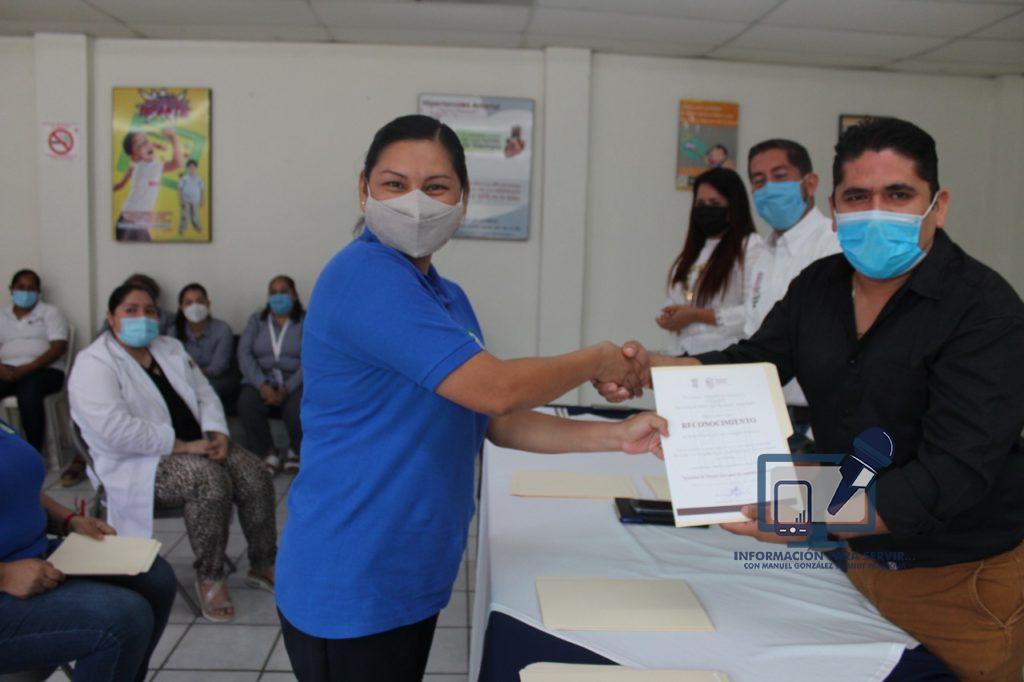 APATZINGÁN, MICH., 16 DE MARZO DE 2022.- En el marco del Día Internacional de la Mujer, el Dr Abraham Espinoza Villa, entregó reconocimientos a todas las mujeres que laboran en la Jurisdicción Sanitaria 07 y el Centro de Salud de Apatzingán y en este mes de la Mujer hizo un reconocimiento público a todas las trabajadoras de salud que laboran en las demarcaciones de este Séptimo Distrito Sanitario.