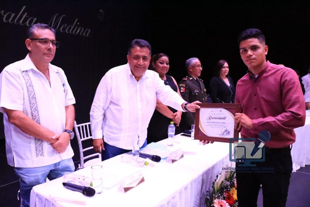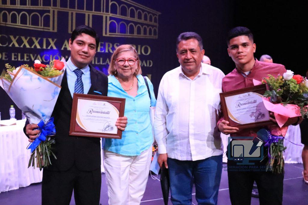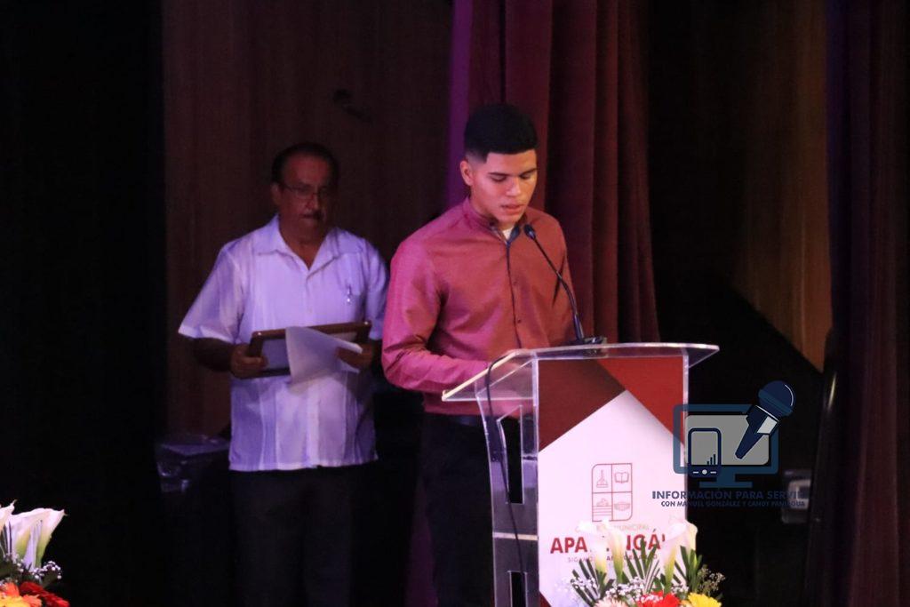 Apatzingán, Mich.- a 21 de Abril del 2022.- Para rendir homenaje a personalidades que han aportado al desarrollo del municipio de Apatzingán, el gobierno que encabeza José Luis Cruz Lucatero en el marco del 139 Aniversario de Elevación de Villa a Ciudad, entregó la condecoración de Ciudadano Distinguido al ingeniero Eliseo Villagrana Villagrana, la distinción de Hija Predilecta para la química Maricruz Campos Díaz en tanto el Merito Juvenil, fue otorgado para Oscar Jassan Sánchez Magaña y el boxeador, Edson Peralta Medina.