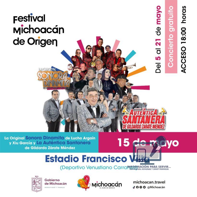 El evento forma parte de conciertos con entrada libre en el marco del Festival Michoacán de Origen. El ingreso para esta actividad está previsto a partir de las 18:00 horas para iniciar a las 19:00 horas.
