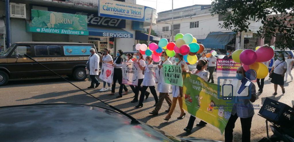En Apatzingán, organizado por el Centro de Salud que dirige el Dr. Efraín Sepúlveda Esquivel y la Coordinación de Promoción de la Salud a cargo de la Psicóloga Alma Sonia Rodríguez Peregrino, se realizó un desfile y una feria en la Biblioteca Pública, «Benito Juárez», ahí el Coordinador de Servicios de Salud, Dr. Salvador Verduzco Contreras afirmó, que se brindaran acciones integrales de salud pública acordes a la línea de vida; ″se acercarán los servicios de salud a los diferentes grupos de población, especialmente a los que se encuentran en situación de vulnerabilidad, a fin de romper la cadena de transmisión de algunos padecimientos, mediante acciones integrales para la prevención de enfermedades.