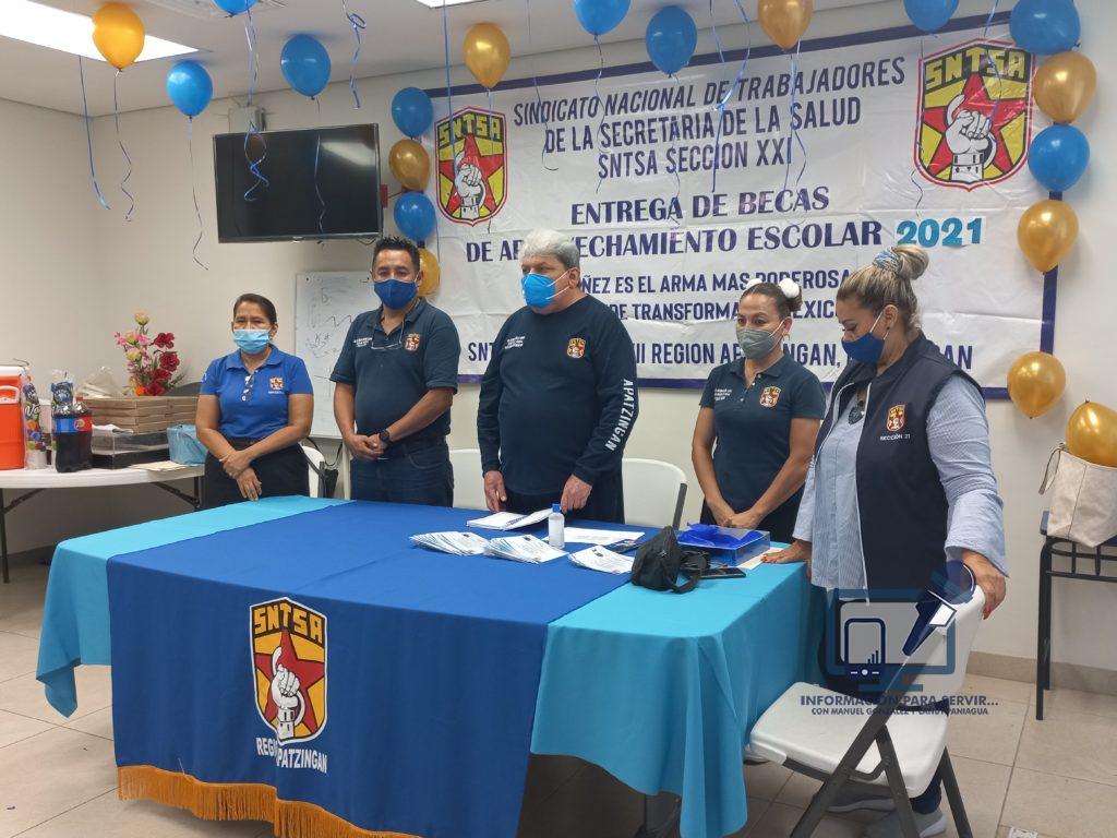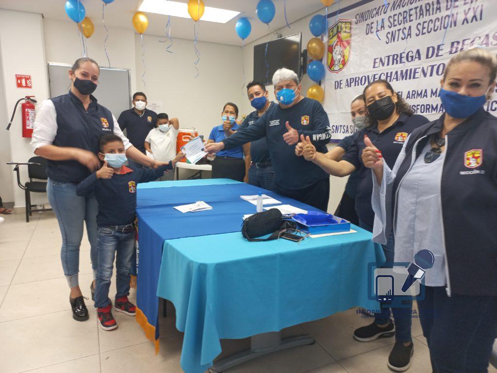 APATZINGÁN, MICH., 27 DE JUNIO DE 2022.- El pasado jueves 23 de junio, el SNTSA Sección 21 que preside el MSP. FABIO MEZA ALFARO, a través del Secretario General de la Subsección VII, Región Apatzingán, DR. ESTEBAN PADILLA INFANTE, entregó las becas de aprovechamiento escolar 2021 a hijos de agremiados a esta organización sindical.