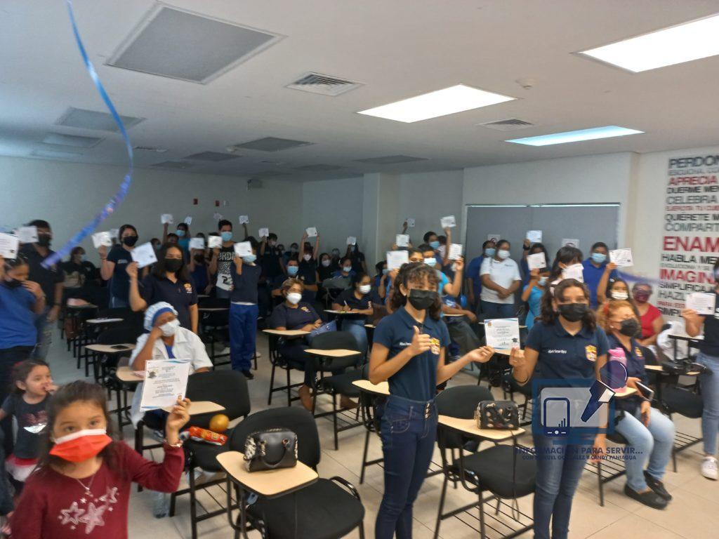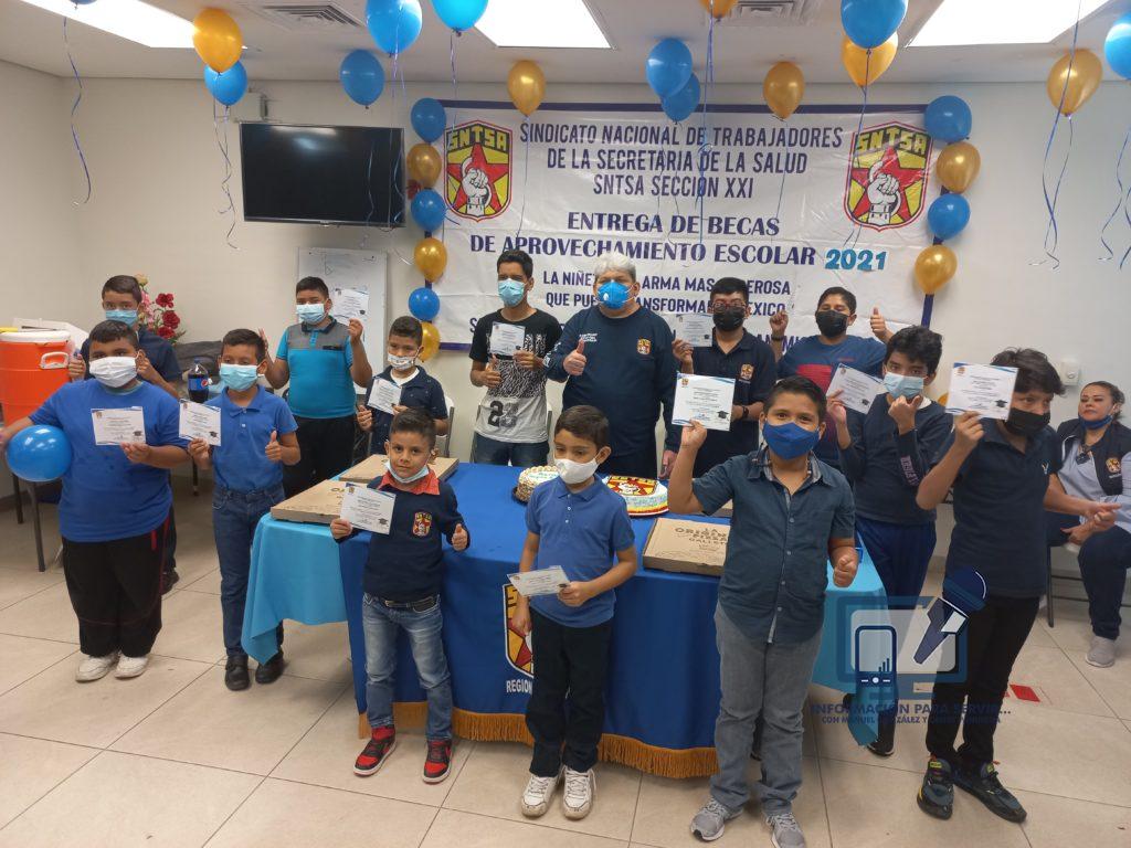Las becas son una motivación para que puedan continuar estudiando y obteniendo promedio excelentes, dijo a los niños que recibieron las becas de aprovechamiento escolar 2021.