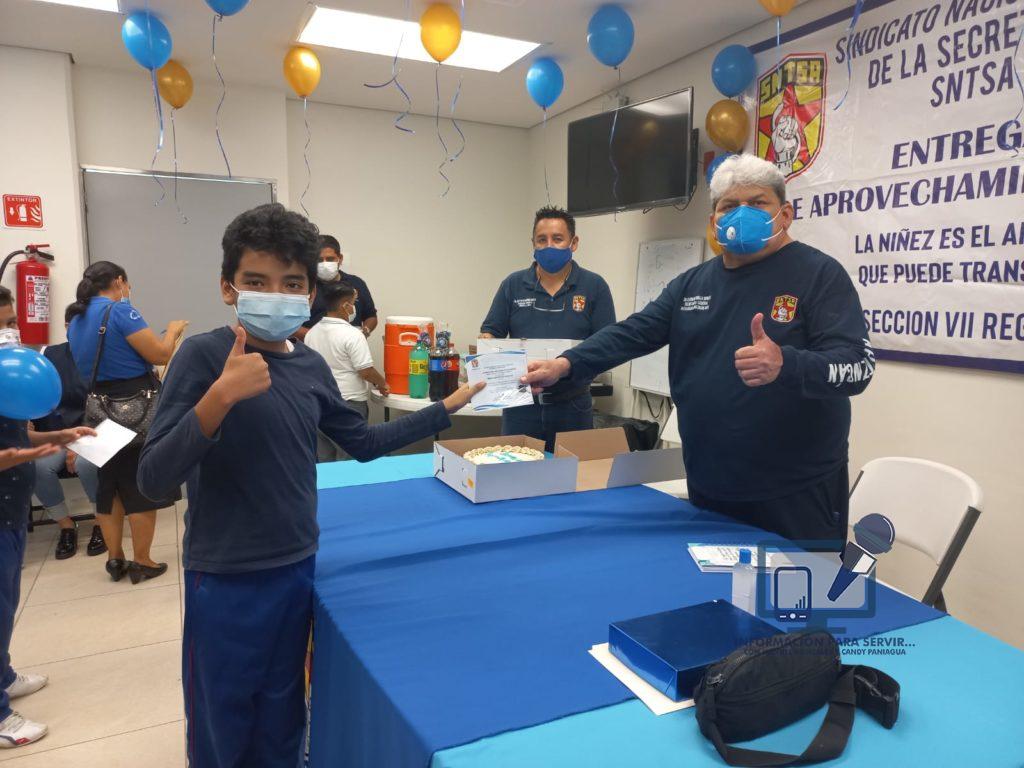 Agregó, que el Secretario General del SNTSA Sección 21, MSP. FABIO MEZA ALFARO y para un servidor, estamos plenamente convencidos que, «la Niñez es el arma más poderosa que puede transformar a Mexico», por ello el programa de becas seguirá siendo prioridad para nuestro sindicato.