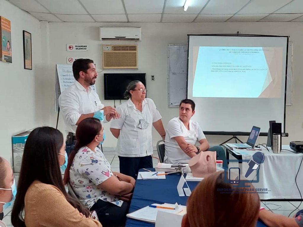 Apatzingán, Mich., 17 de junio de 2022.- Como parte del programa de capacitación y actualización continua dirigida al personal de salud adscrito a Centros de Salud y Unidades Móviles que se localizan en las demarcaciones del Séptimo Distrito Sanitario que dirige el Dr. Abraham Espinoza Villa, esta semana se impartió un taller sobre la Norma Oficial Mexicana 004 del Expediente Clínico y la 014 para la Prevención, Diagnóstico, Tratamiento, Control y Vigilancia Epidemiológica del Cáncer Cervical.
