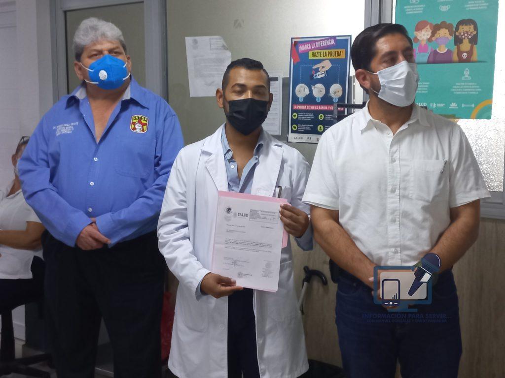 - En este acto encabezado por el Jefe de la Jurisdicción 07, Dr. Abraham Espinoza Villa, estuvieron presentes el Dr. Esteban Padilla Infante representante del SNTSA Sección 21 y Hugo Ernesto Larios del SUTOPDSSM.
