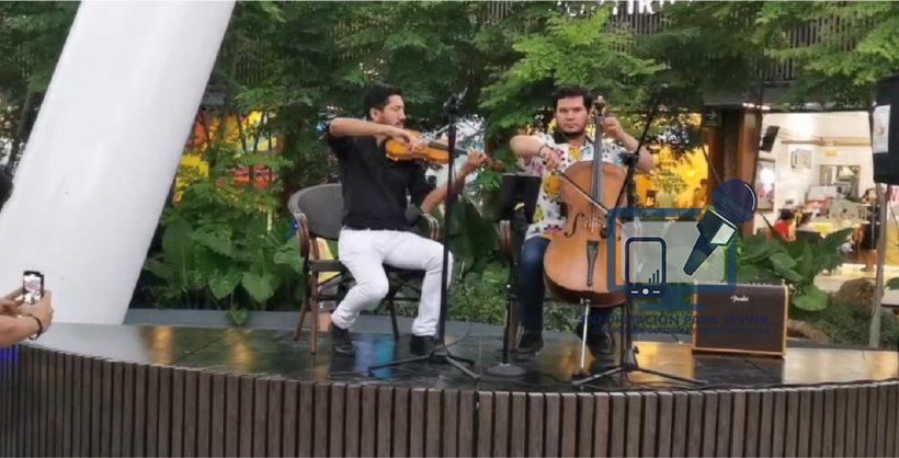 “La vida en rosa”, entre muchas mas, fueron de las melodías interpretada con las suaves notas del violín y el violonchelo, que gozaron los asistentes a tardes de música, que se han vuelto las preferidas de quienes visitan este moderno Centro Comercial, que desde la apertura de su primera etapa, es el nuevo punto de encuentro de las familias de Apatzingán y la Región.