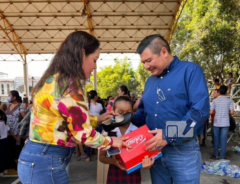 APATZINGAN, MICH., 24 DE SEPTIEMBRE DE 2022.- En una acción sin precedentes en Apatzingán, Roldan Álvarez Ayala, beneficia a más de mil niños con calzado escolar que les es entregado de forma totalmente gratuita.