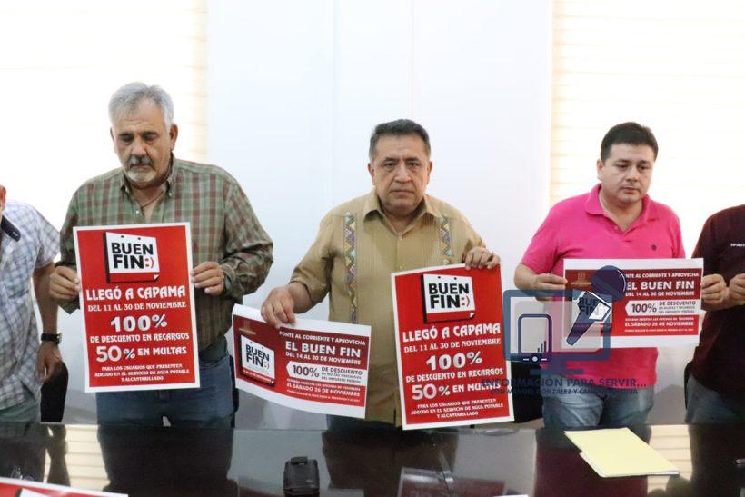 El presidente Cruz Lucatero acompañado por el secretario de Finanzas, José Abarca Díaz Barriga; el director del Predial, Roberto Velazco; el titular del Capama, Homero Gómez y el secretario del Ayuntamiento, Sabino Campos, coincidieron que las familias están esperando el Buen Fin para realizar algunas compras y también cumplir con el pago de los impuestos que durante al año no les fue posible.