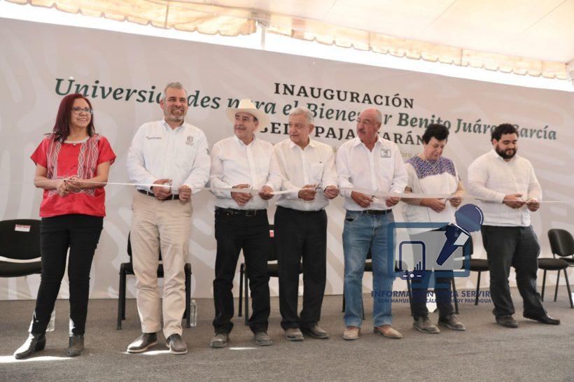 Pajacuarán, Michoacán, 18 de noviembre del 2022.- El gobernador Alfredo Ramírez Bedolla y el presidente de la República, Andrés Manuel López Obrador, inauguraron la Universidad para el Bienestar «Benito Juárez García» con sede en Pajacuarán.