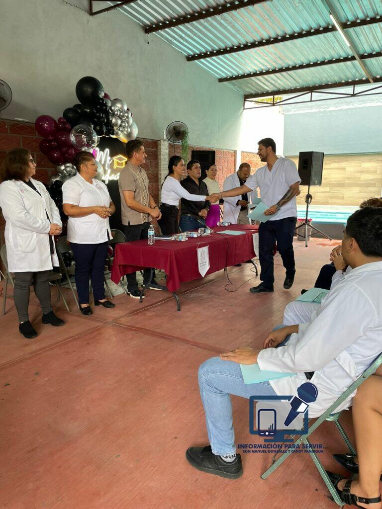 Apatzingán, Michoacán, 31 de julio de 2024.- En una emotiva ceremonia encabezada por la Alcaldesa Electa de Apatzingán, Fanny Arreola Pichardo, y el Jefe del Séptimo Distrito Sanitario, Dr. René López Castro, el Administrador Jurisdiccional Rogelio Emmanuel Vaca Rojas, de enseñanza Dr. Mateo Navarro Jacinto y el equipo de coordinadores de esta dependencia, se llevó a cabo la entrega de cartas de liberación del Servicio Social ciclo 2023/2024 a 48 pasantes de diversas disciplinas como Medicina, Odontología, Enfermería, Salud Pública, Ingeniería Bioquímica y Nutrición.
