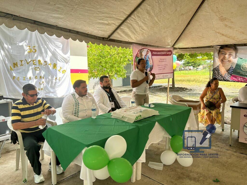 La Ruana, mpio. de Buenavista, Mich., 01 de agosto de 2024. – Con una feria de salud, celebraron el 35 aniversario del Centro de Salud de La Ruana. Durante el evento se ofrecieron diversos servicios, como la entrega de la cartilla nacional de salud, vacunación, orientación sobre estilos de vida saludable, prevención de intoxicación por plaguicidas, y otros servicios médicos dirigidos a todos los habitantes de la tenencia de Felipe Carrillo Puerto, La Ruana, en el municipio de Buenavista.