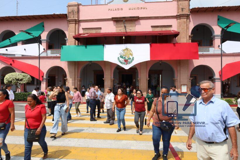 Fue en punto de la 11:00 que se activó la alerta sísmica para que los trabajadores evacuaran el edificio del Ayuntamiento, los empleados bajaron por las escaleras para concentrarse en la Plaza de los Constituyentes y explanada municipal, lugares en que los elementos de Protección Civil realizaron acciones de primeros auxilios a los ciudadanos que en caso de alguna emergencia se tendría que dar atención primaria.