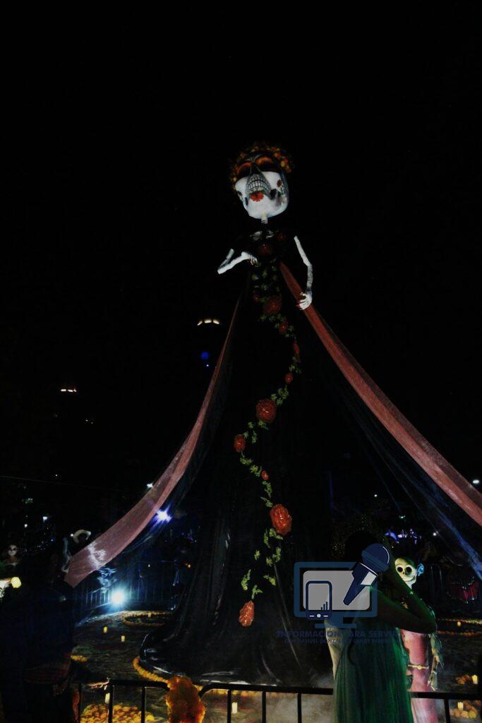 Previo al encendido de la catrina de 6 metros, las autoridades disfrutaron las presentaciones culturales y artistas dirigidas por el Centro Cultural La Estación, así como la creativa exhibición de altares instalados alrededor de la Plaza Los Constituyentes y montados por alumnos del Colegio de Bachilleres, Cecytem, Tec Mexiquense y las universidades Unimo y Unicla.
