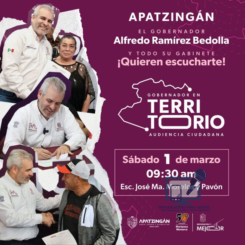 El gobernador Alfredo Ramírez estará en Apatzingán en la Audiencia Ciudadana