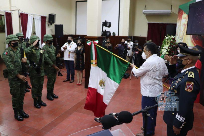 “Hoy celebramos aquí en Apatzingán, este momento fundacional de la soberanía nacional y se rinde el merecido homenaje a un episodio de la historia de México, mismo que marca un parteaguas entre el avasallamiento colonizador de la corona española y el despertar libertario de los mexicanos”, expuso el alcalde.