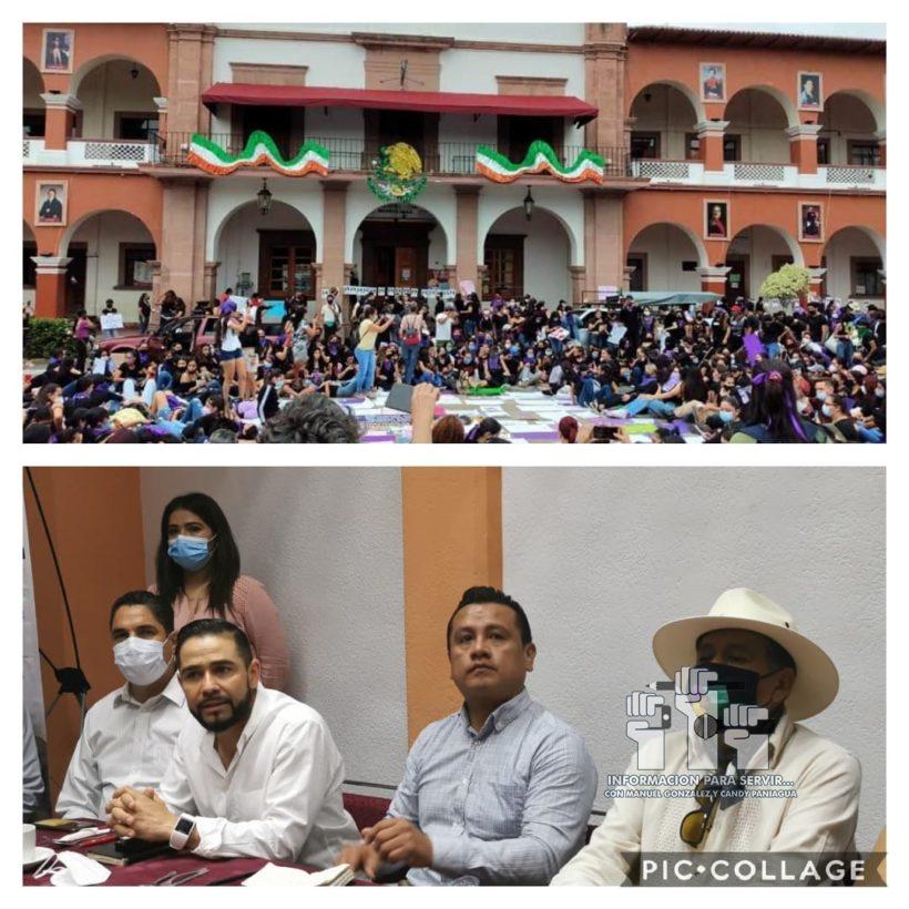 Las mujeres y hombres que se sumaron a esta lucha, reclamaron a la autoridad su pasividad a lo que integrantes de la mesa de seguridad ofrecieron acompañamiento permanente a lo que respondieron las féminas, estamos unidas y si no nos hacen caso #QueArdaTodo.