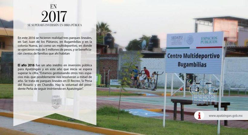 Pese a que el 2016 fue un año complicado en el país, en Apatzingán se conjuntaron esfuerzos para que hubiera más obra, resaltó el presidente municipal César Chávez Garibay, quien detalló que en este año que concluyó se ejecutaron obras de gran impacto para […]